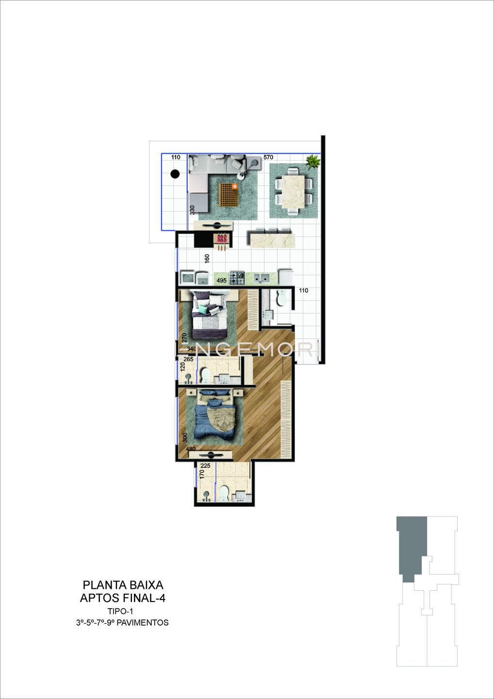 Com um dormitório espaçoso e bem distribuído, este apartamento oferece todo o aconchego que você merece. Além disso, conta com um banheiro elegante e uma cozinha planejada, perfeita para preparar suas refeições com praticidade.