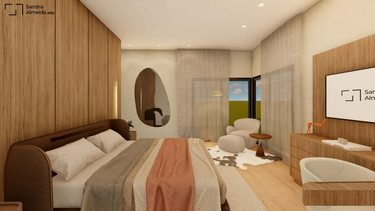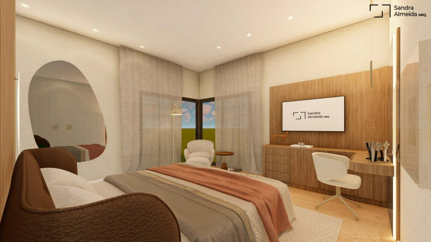 Não serão entregues móveis soltos nem objetos de decoração. A iluminação será conforme projeto, com luminárias embutidas no gesso.